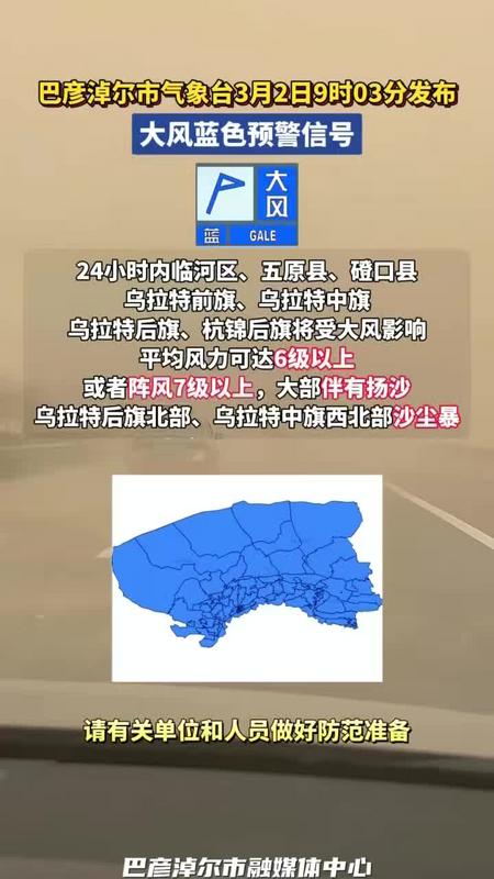 巴彦淖尔市气象台3月2日9时03分发布大风蓝色预警信号