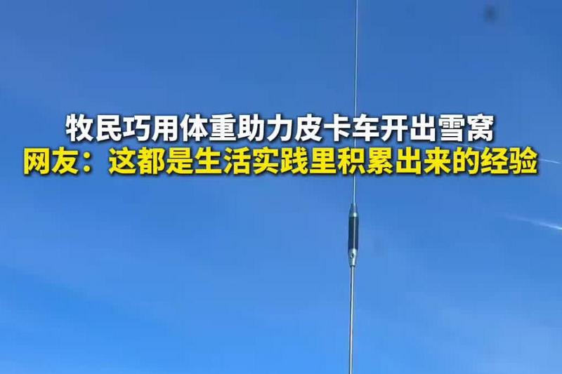 牧民巧用体重助力皮卡车开出雪窝,网友:这都是生活实践里积累出来的经验