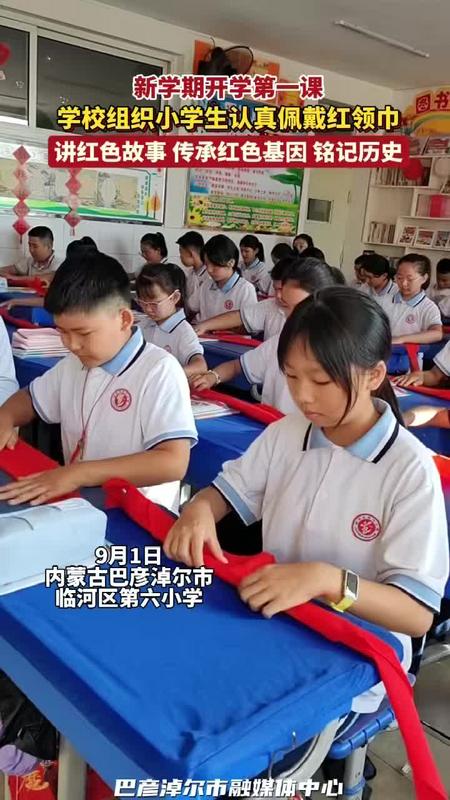 新学期开学第一课 学校组织小学生认真佩戴红领巾,讲红色故事,传承红色基因,铭记历史