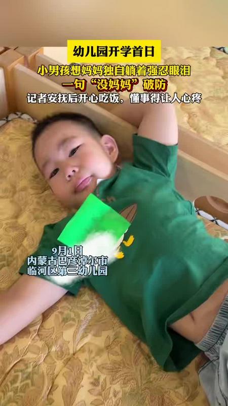 幼儿园开学首日,小男孩想妈妈独自躺着强忍眼泪,一句“没妈妈”破防,记者安抚后开心吃饭,懂事得让人心疼