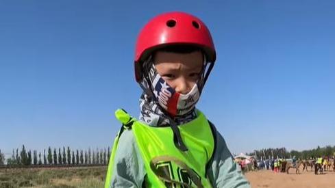 内蒙古巴彦淖尔7岁小男孩骑龄两年,勇夺那达慕10000米赛马冠军,比赛结束后还得大人抱下马