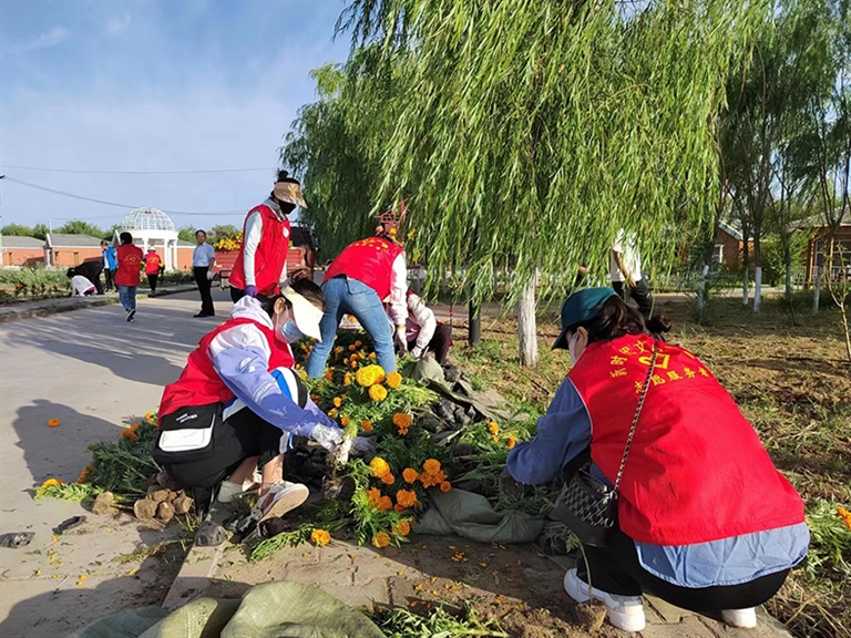 志愿者栽种花草扮靓家园