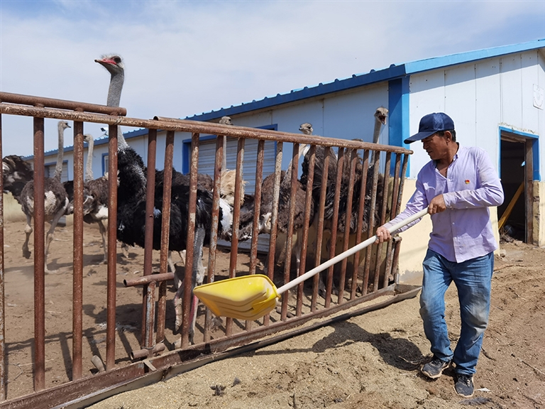 “技术人员隔三差五过来指导,教给他们饲养技巧和注意事项,现在养鸵鸟就像养鸡养鸭一样简单,可以说是‘无忧养殖’了。”义和久嘎查党支部书记孟新生说。