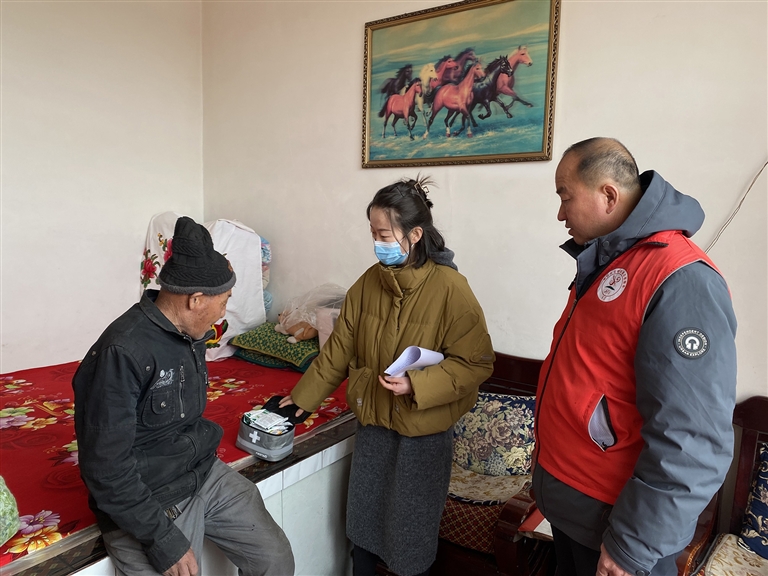 2月21日,磴口县渡口镇党委政府携手渡口镇新时代文明实践所(站)志愿者,为辖区低保户、五保户、特困户、孤残儿童免费发放“爱心医药包”。