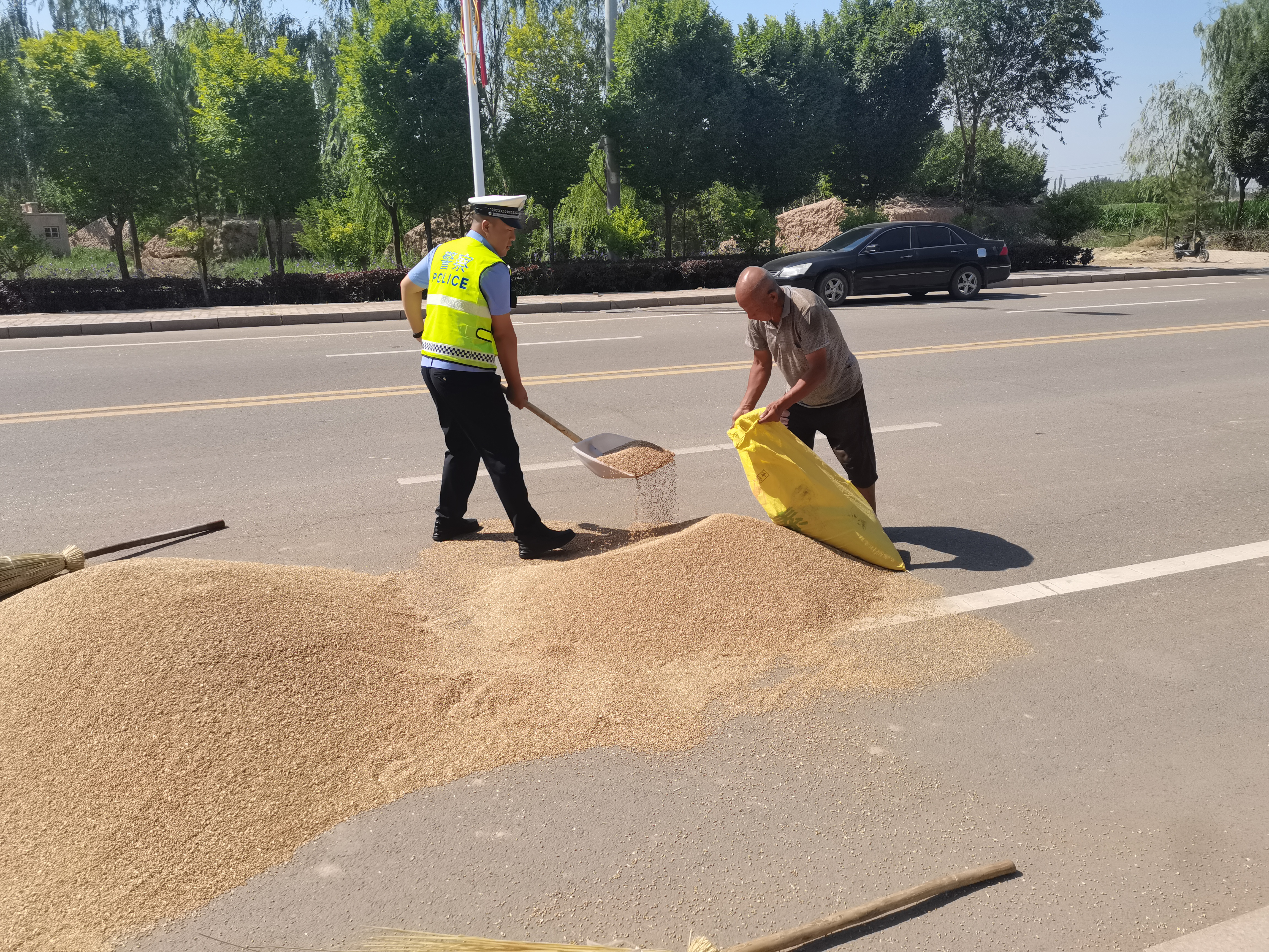 7月18日,五原县交管大队公路一中队执勤民警巡逻时,发现212省道上有人在占道晒粮,民警立即停车向当事人询问具体情况,得知是联合三组全组村民在公路两侧晒小麦,目测占道一公里,严重妨碍车辆通行,于是立即对农户进行劝导并帮助收集粮食。收粮食的同时民警告知农户占道晒粮的违法性及发生意外之后需要承担的法律责任。经过民警的耐心教育,晒粮农民纷纷将道路上的粮食收起装袋,并表示今后会自觉遵守法律法规,不再占道晒粮。