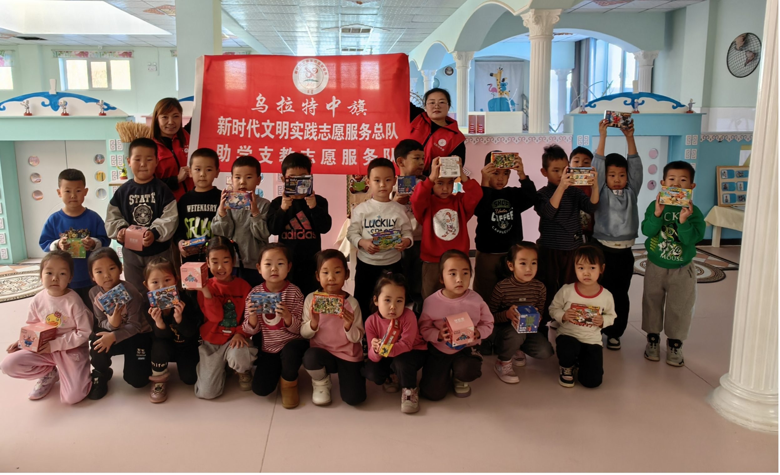 11月24日上午,乌拉特中旗总工会助学支教志愿服务队走进中旗第二幼儿园,开展“情暖童心 快乐成长”活动。活动中,志愿者为孩子们带来生动有趣的识字课,并为每个孩子准备了精美礼品。