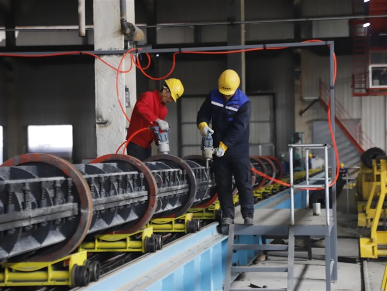 内蒙古鲁闽建材有限公司是集团公司在西部投资建设的第一个生产基地,计划投资2亿元,项目分两期建设,建设2条年产300万米新能源光伏管桩生产线。一期项目投资1.1亿元,于2023年11月开工,2024年3月6日成功试产,预计3月份生产10万米,目前工艺设备仍处于调试阶段。二期项目计划于今年4月份启动,8月份建成投产,两期项目全面达产后可实现年产值6亿元,可提供就业岗位110个,将成为西北最大的混凝土预制构件生产企业之一。