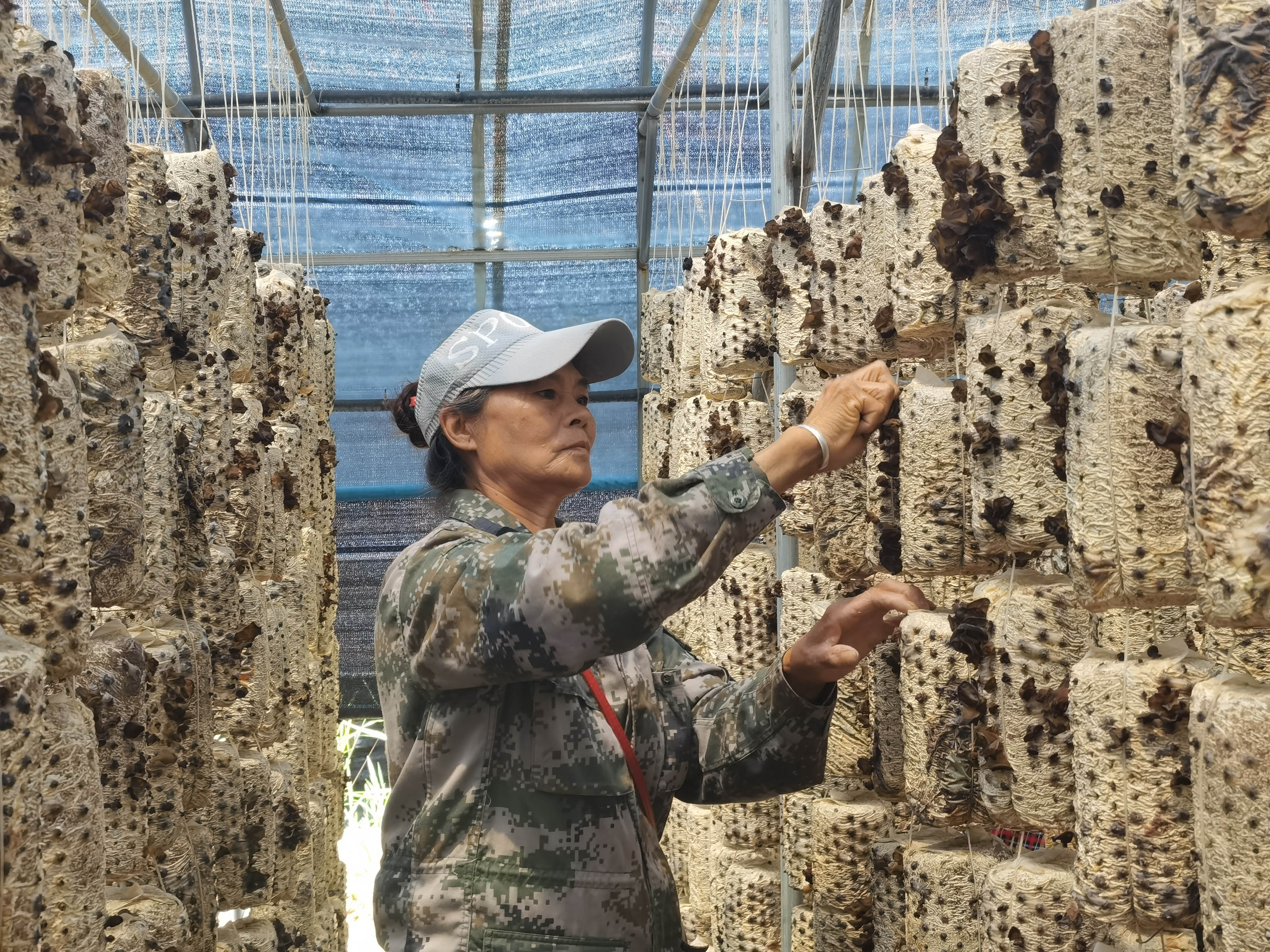 “截至5月30日,我们已经生产了82000棒秋耳菌棒,正在培菌间养殖,准备7月20日左右进棚。我们今年还生产了白玉木耳,蘑菇类生产了香菇、圆子菇、凤尾菇,还有平菇,今年准备试验五六棚,为明年打好基础、积累经验。”康和说。