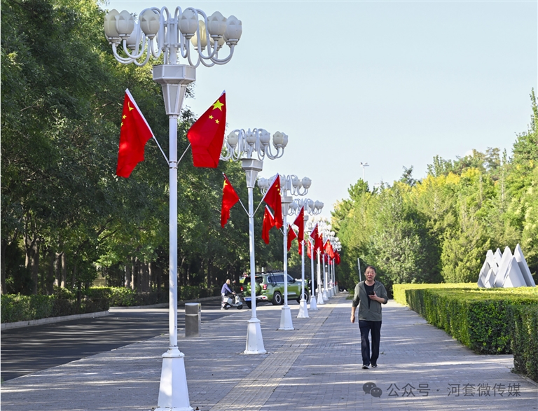 国庆节将至,巴彦淖尔大街小巷洋溢着浓厚的喜庆氛围。公园广场,节日主题花坛喜气洋洋;街道两旁,五星红旗迎风飘扬。人们脸上洋溢着笑容,或结伴而行,或驻足欣赏,或拍照记录,或以画寄情……