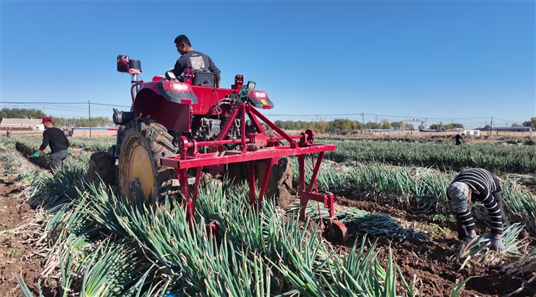 目前,在河套地区,小麦、玉米从种到收已经实现全程机械化,但是大葱、洋葱、柿子等农作物的多数生产环节还是依赖人工。这不仅为当地那些将土地流转出去的农户提供了大量在家门口就能务工的机会,也吸引了大批外来务工人员。