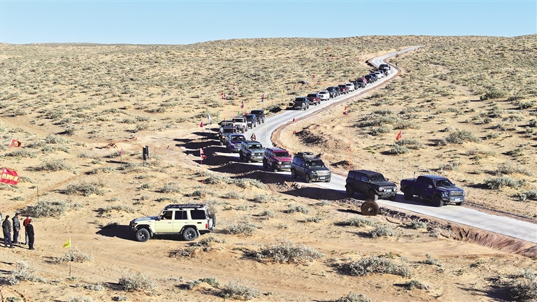 国庆假期,来自北京、天津等地的游客驾车穿越“渡·阴山”自驾游线路。