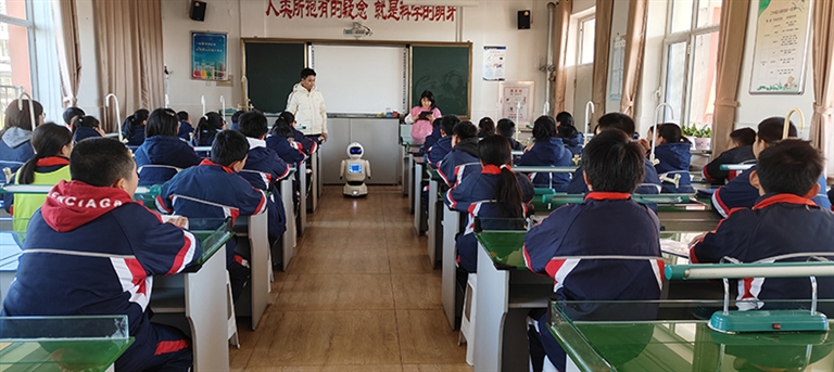“孩子们与‘宾果’机器人互动,在课堂上积极参与讨论和发言,表现出了对人工智能极大的兴趣。‘宾果’提出的问题,孩子们都能一一作答,这种互动式的教学模式极大地激发了孩子们的学习热情。今后,‘宾果’还将走进更多学科课堂,改变传统的教学形式,提升孩子们的学习兴趣。”六(2)班科学老师赵重香介绍。