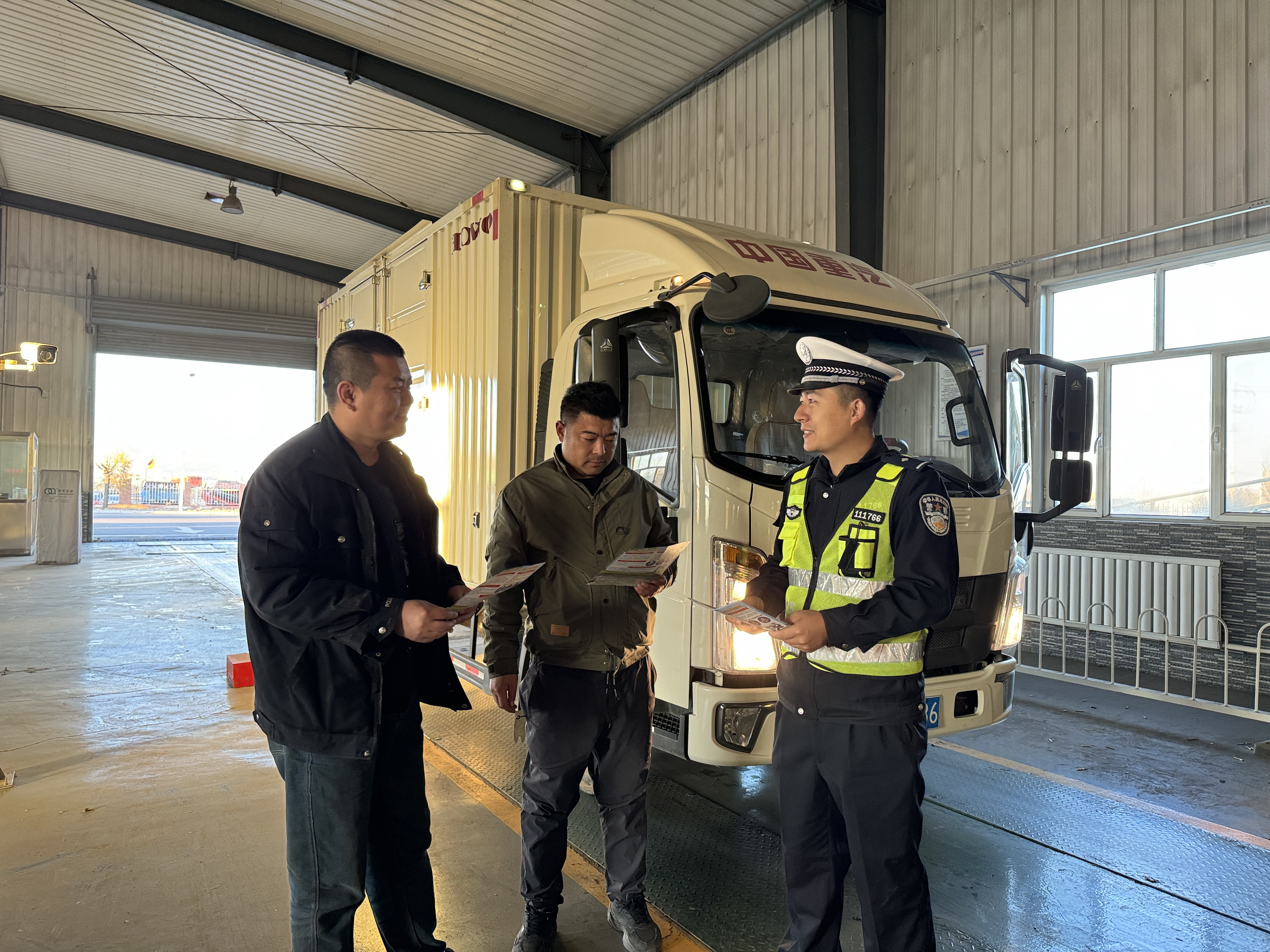 近日,乌拉特中旗交管大队宣传民警走进机动车检测站,为前来办理车辆检测的驾驶人及检测站工作人员发放了相关宣传材料,向驾驶员朋友讲解近期辖区发生的典型交通事故案例,讲解交通事故的成因及违法行为的危害,普及车辆盲区相关交通安全常识。