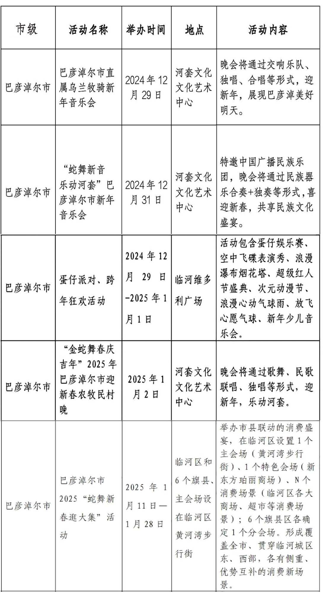 巴彦淖尔市冬季文旅活动持续火热进行中,集音乐、娱乐、民俗、购物于一体,快来和我们一起在这个冬天留下难忘的回忆,共同感受巴彦淖尔的独特魅力与热情活力吧!