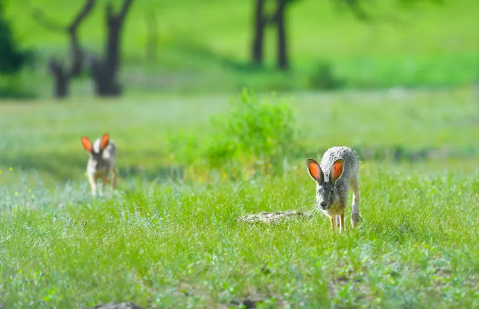 穿行浑善达克沙地,不时会看到野兔、狍子、灰鹤等小动物。