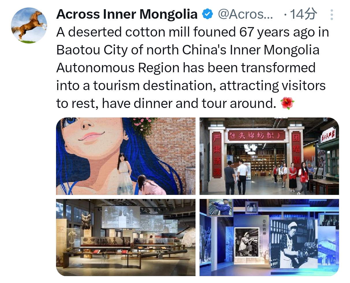 以下是部分海外社交媒体平台发布的内蒙古文旅新业态、文化新场景的页面展示。