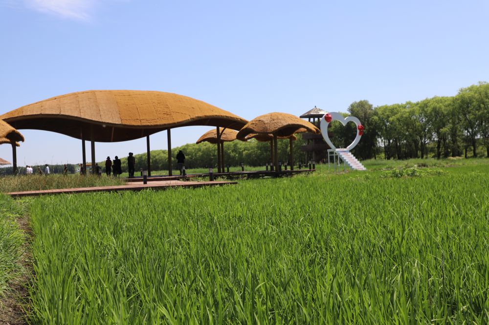 拥有几千亩水域面积的明星湖旅游度假区于2022年开工建设,2024年被评为4A级旅游度假区。在“稻梦空间”板块,300亩水稻田成为热门打卡点,不少新人在此拍摄婚纱照。特色民宿街上,不少游客在体验手工制茶。手工编织非遗小院主理人刘玉环说,自试营业以来,每天都能接待上百名游客,小院通过售卖编织手工艺品,和传统东北大酱、米酒等乡村特产,在试营业阶段每天就有近千元销售额。