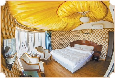 在童日格手中,这种文明融合创新的“第一个”无处不在。他用俄罗斯的樟子松制作框架和结构件,以传统羊毛毡结合新式聚氨酯保温材料提升御寒能力,并在包顶铺设太阳能板。为改进蒙古包采光,他在三层中空玻璃制作的落地窗中嵌入“图尔嘎”(蒙古包的壁毡)。蒙古包内配置的一体化移动式生物污水处理系统,让现代生活的便利与草原生态保护和谐统一。游客住在“乌愣阁日”中,推窗即可见绿,草原风情在古今交融的空间内更具韵味。
