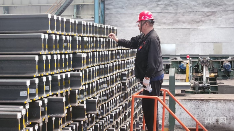 工作人员对出厂的钢轨做最后的检查(央广网记者 杨亚东 摄)