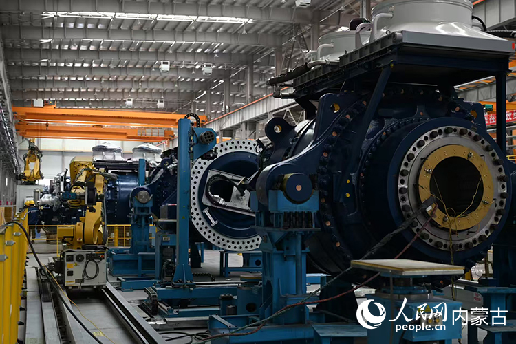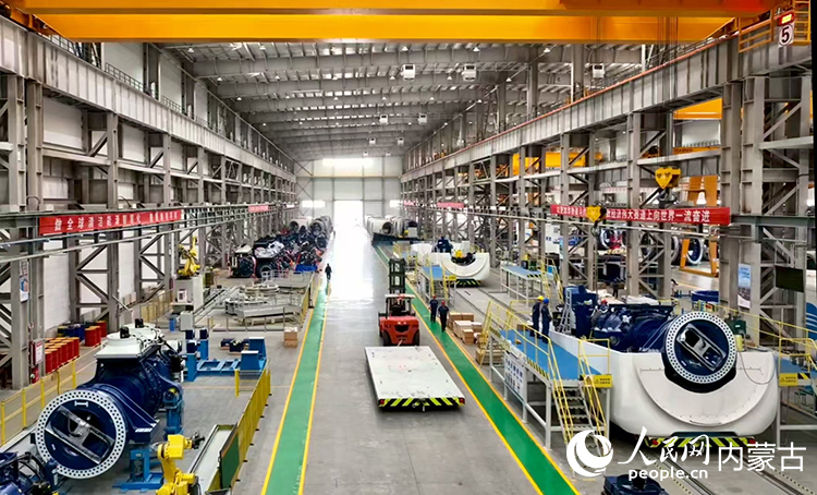 明阳新能源智能制造产业园内正在组装的风机。人民网记者 张雪冬摄
