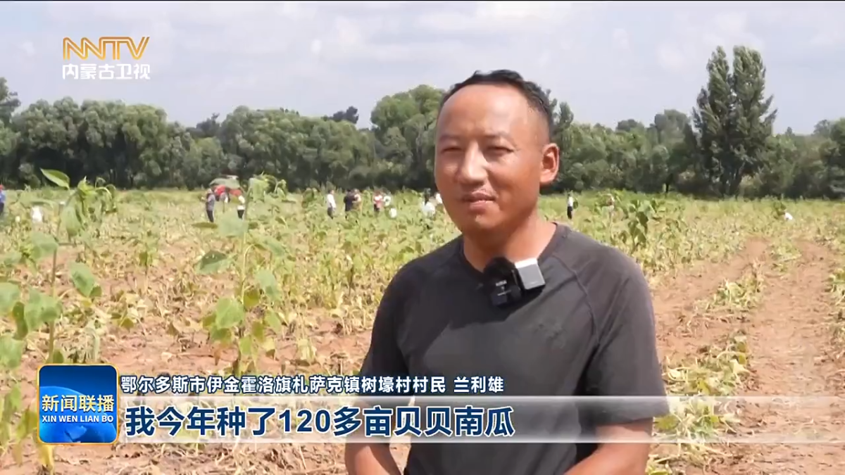 鄂尔多斯市伊金霍洛旗札萨克镇树壕村村民 兰利雄 我今年种了120多亩贝贝南瓜,产量大概有30多万斤吧,驻村第一书记过来,给我销售贝贝南瓜,让顾客能实实际际看到,从我这里采下到了顾客手里。