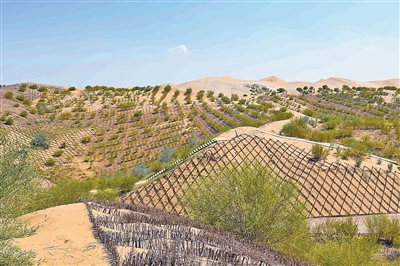 治理中的库布其沙漠。 本报记者 吴 勇摄