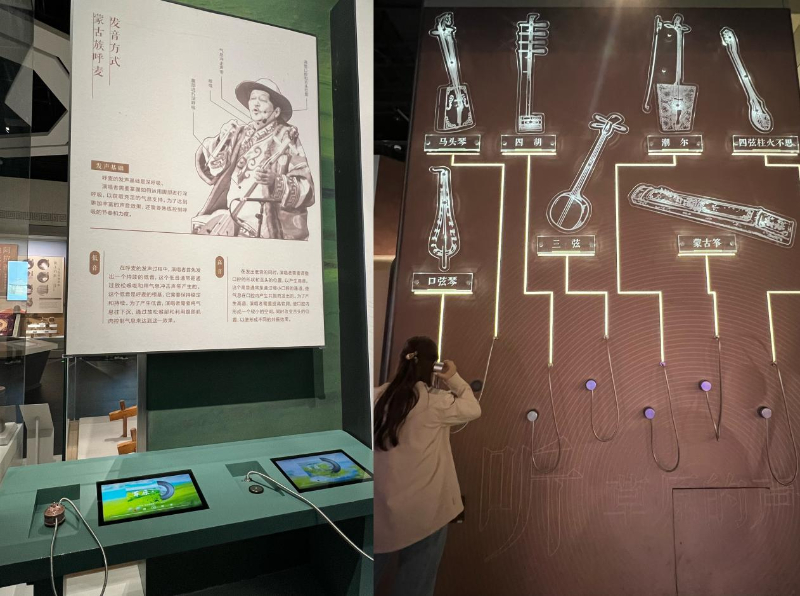 图为内蒙古博物院呼麦体验(左图)与乐器体验(右图)。新华网 李世纯 摄
