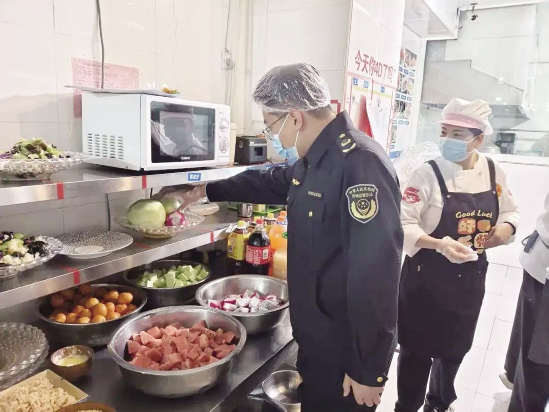 而“五化”管理,就是设计透明化、工具用具色标化、储存食品超市化、加工操作规范化、餐饮管理标准化。“五化”管理模式从人员管理、食材溯源、加工操作等方面对餐饮服务各环节进行全面规范,推动形成“规范—安全—发展”的良性循环。