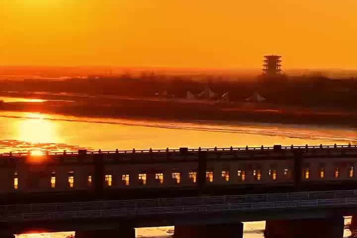 在黄河三盛公水利枢纽遇见冬日夕阳