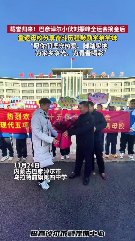 巴彦淖尔小伙刘振峰全运会摘金后,重返母校分享奋斗历程鼓励学弟学妹,“愿你们坚守热爱、脚踏实地,为家乡争光、为青春喝彩
