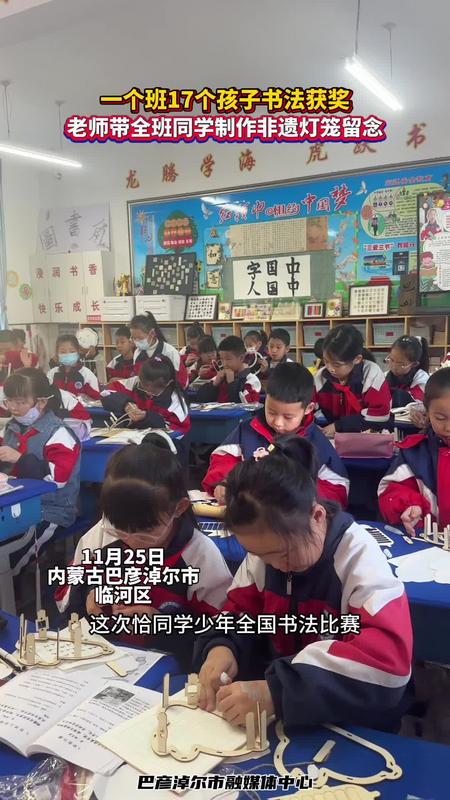 一个班17个孩子书法获奖,老师带全班同学制作非遗灯笼留念