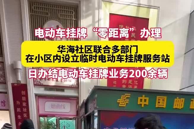 电动车挂牌“零距离”办理,华海社区联合多部门在小区内设立临时电动车挂牌服务站,日办结电动车挂牌业务200余辆