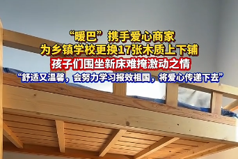 “暖巴”携手爱心商家为乡镇学校更换17张木质上下铺,孩子们围坐新床难掩激动之情,“舒适又温馨,会努力学习报效祖国,将爱心传递下去”