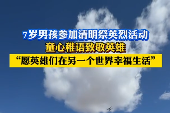 7 岁男孩参加清明祭英烈活动,童心稚语致敬英雄:“愿英雄们在另一个世界幸福生活”