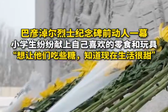 巴彦淖尔烈士纪念碑前动人一幕,小学生纷纷献上自己喜欢的零食和玩具,“想让他们吃些糖,知道现在生活很甜”