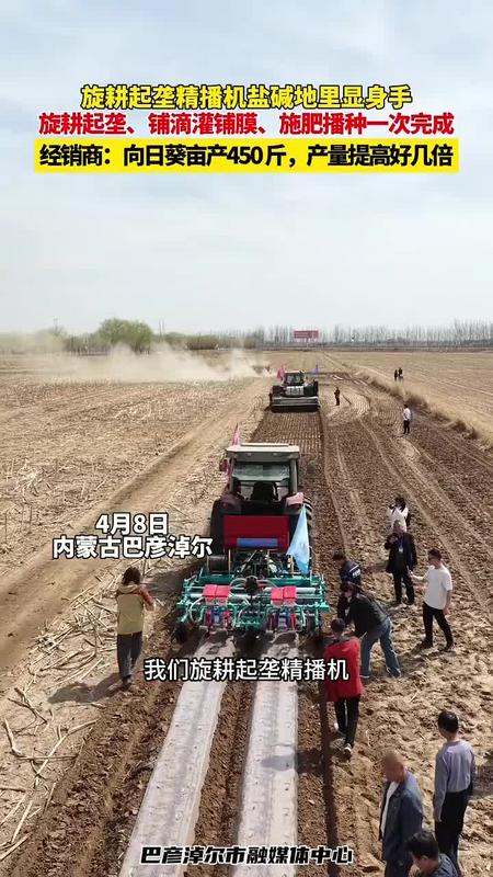 旋耕起垄精播机盐碱地里显身手,旋耕起垄、铺滴灌铺膜、施肥播种一次完成,经销商:向日葵亩产450 斤,产量提高好几倍