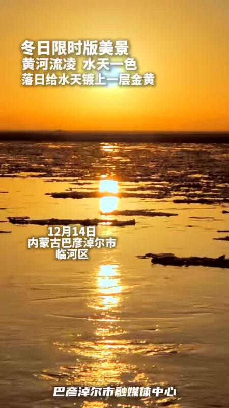 冬日限时版美景,黄河流凌 水天一色,落日给水天镀上一层金黄