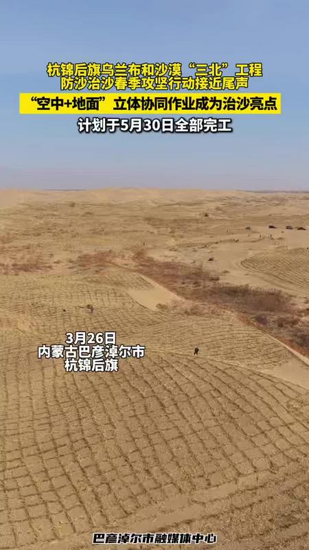 杭锦后旗乌兰布和沙漠“三北”工程,防沙治沙春季攻坚行动接近尾声,“空中+地面”立体协同作业成为治沙亮点,计划于5月30日全部完工