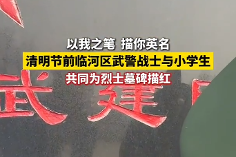 以我之笔,描你英名,清明节前临河区武警战士与小学生共同为烈士墓碑描红