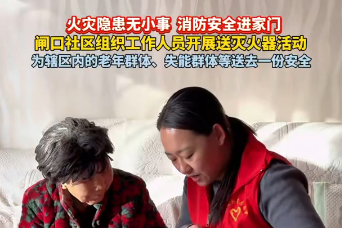 火灾隐患无小事,消防安全进家门,闸口社区组织工作人员开展送灭火器活动,为辖区内的老年群体、失能群体等送去一份安全