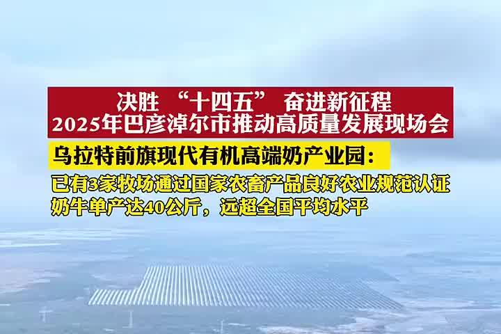 决胜“十四五”奋进新征程 2025年巴彦淖尔市推动高质量发展现场会,乌拉特前旗现代有机高端奶产业园:已有3家牧场通过国家农畜产品良好农业规范认证,奶牛单产达40公斤,远超全国平均水平