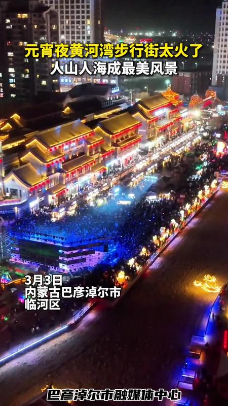 元宵夜黄河湾步行街太火了,人山人海成最美风景