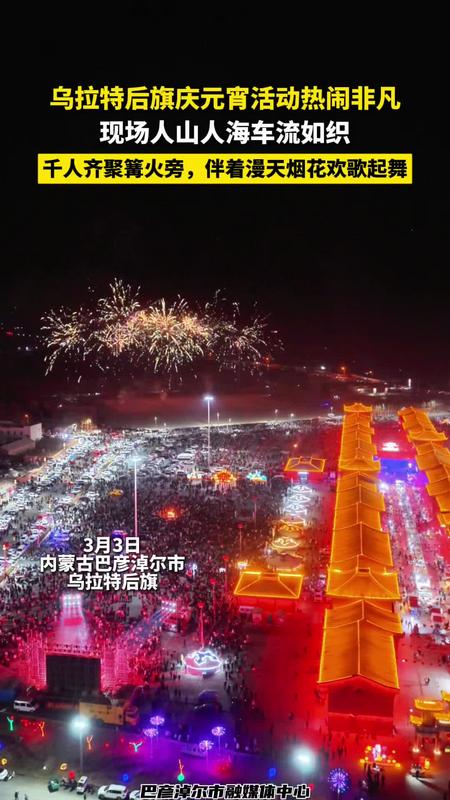 乌拉特后旗庆元宵活动热闹非凡,现场人山人海车流如织,千人齐聚篝火旁,伴着漫天烟花欢歌起舞