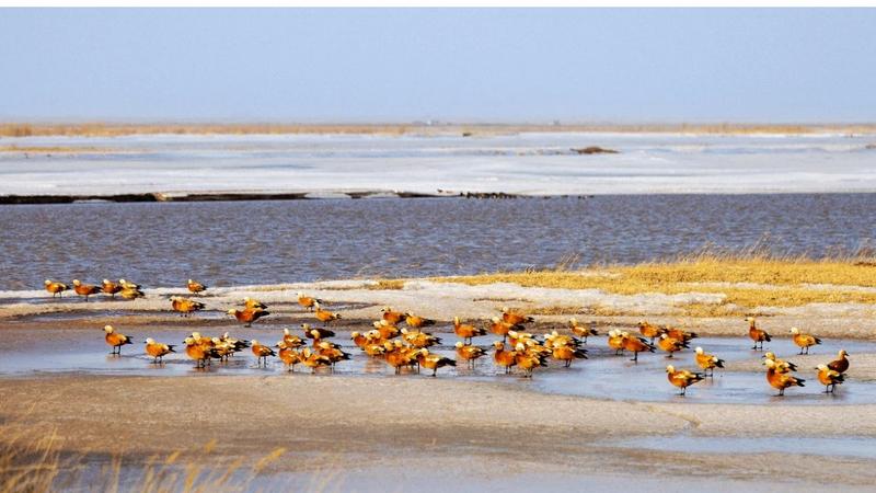 视觉巴彦淖尔丨赤麻鸭相聚黄河湿地