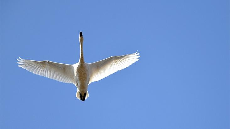 首批南迁白天鹅飞抵磴口