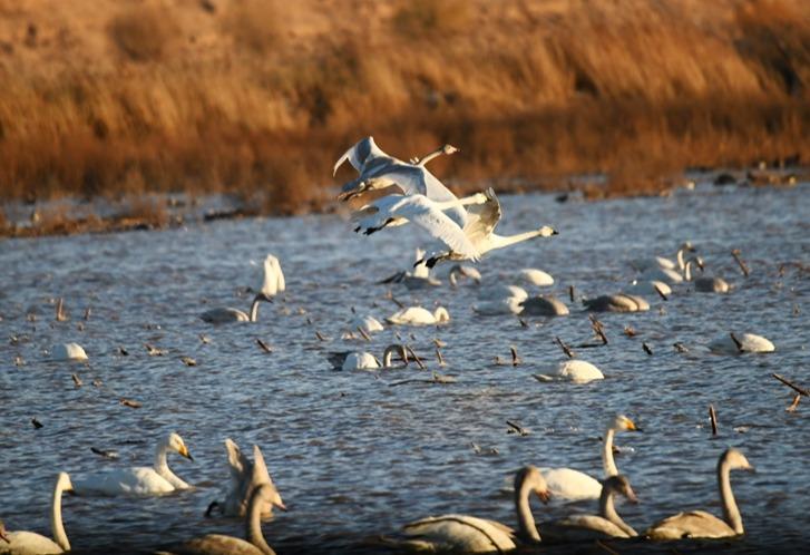 千余白天鹅打卡磴口黄河湿地 公安民警全力守护用心“护飞”