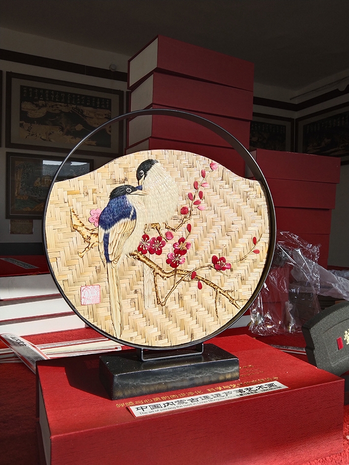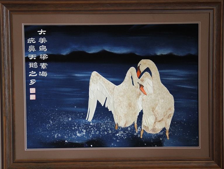 连军强利用乌梁素海天然芦苇,挖掘塞外地域文化特别是河套文化深厚底蕴,将中国传统工艺与现代艺术理念完美融合,每帧连运芦苇画艺术品堪称 “绿色环保艺术画”,图案淳朴逼真,色彩淡雅古朴,风格美而不俗,地域特色浓郁,与绿色环保、生态自然的时代审美追求高度契合。依守乌梁素海,躬耕 “塞上江南”,植根河套文化,全力打造绿色生态产业链,为祖国北疆绿色发展贡献艺术的智慧和力量。