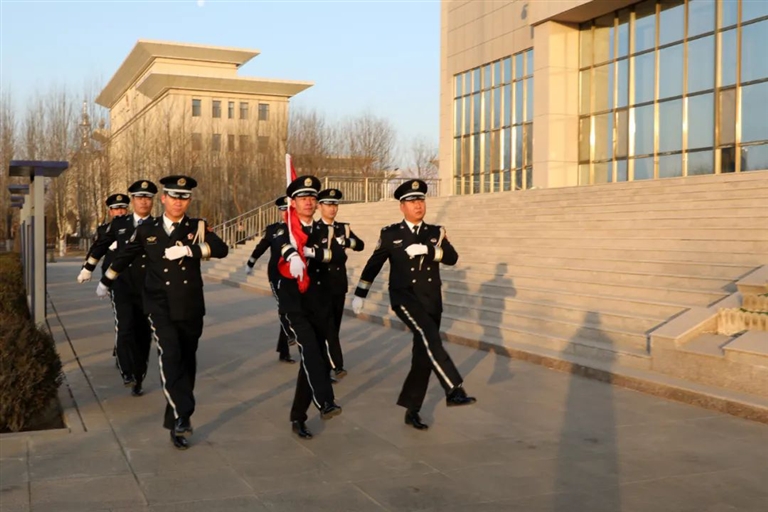 上午8时许,升国旗仪式在局机关大楼前举行,局班子成员和全体民辅警在国歌声中庄严地向国旗敬礼,表达对党的无限忠诚和对公安事业的热爱。