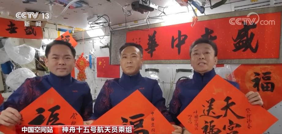 神舟十五号航天员乘组:此刻,中国空间站正飞跃祖国的上空,也许你已经和家人团聚,也许你正在返乡的途中,但也有很多人和我们一样,坚守在自己的岗位,为祖国守岁、为人民站岗。新春到来之际,我们在中国空间站祝愿大家平安喜乐,皆得所愿。