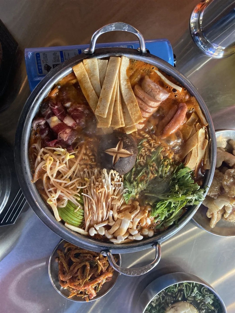 “欢欢布车”的特色菜有韩式部队火锅、火辣牛肠锅,还有酸甜口味的东北老式锅包肉,点这道菜的人最多,火辣辣的鸡爪也是必点菜。招牌菜品有十多种,最受欢迎的泡菜都是延边大厨用传统方式腌制的。